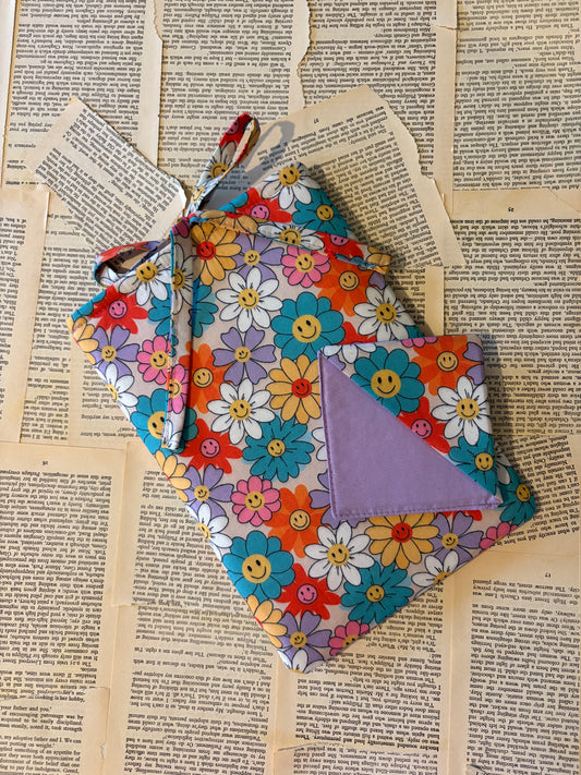 Happy flowers Tie Top Book sleeve and corner bookmark
